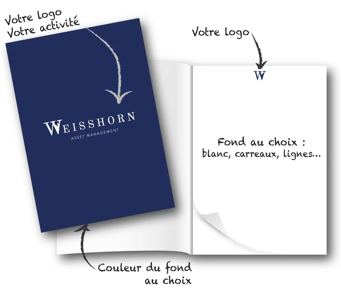 Les caractéristiques options possibles de votre Bloc personnalisé avec couverture A5