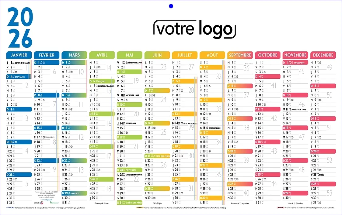 Les caractéristiques et options possibles de votre Calendrier publicitaire ambulancier maxi bancaire couleur 12 mois